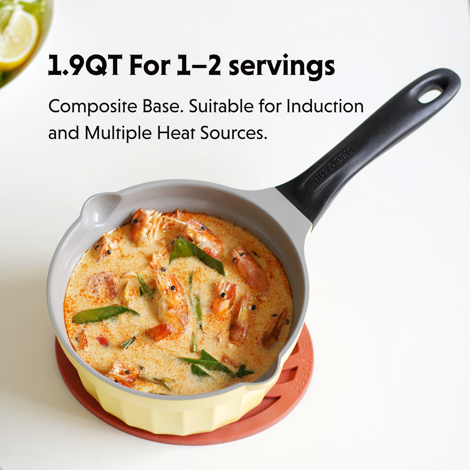 Features a Swiss ceramic coating that is free from PFAS, PFOS & PFOA for safe and healthy cooking. 1.9QT capacity, perfect for 1–2 servings. Compatible with all stovetops, with a built-in spout for easy pouring and a smooth design for effortless cleaning.