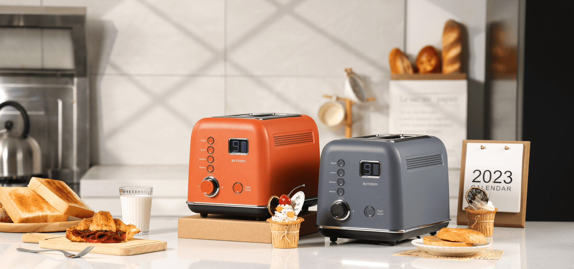 Elevate your breakfast experience with our retro 2- slice toaster featuring an automated lever-less lift, a LCD displayer and 9 shade settings.