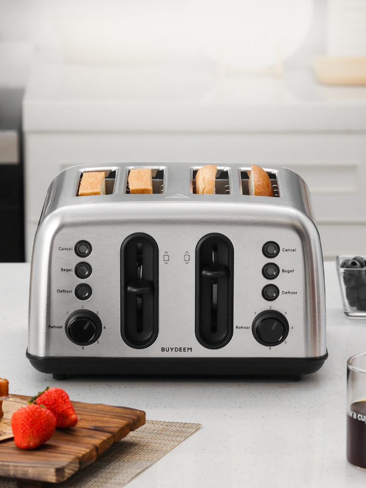 The latest 4-slice toaster with a compact design,6 toast shade settings,and 4 basic functions to satisfy all your breakfast needs.