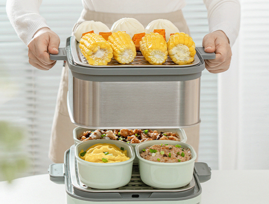 The G67 food steamer can steam more in one go, effortlessly serving 3-6 people and saving time - a must-have for big families. Use with additional steaming racks to maximize capacity and efficiency.