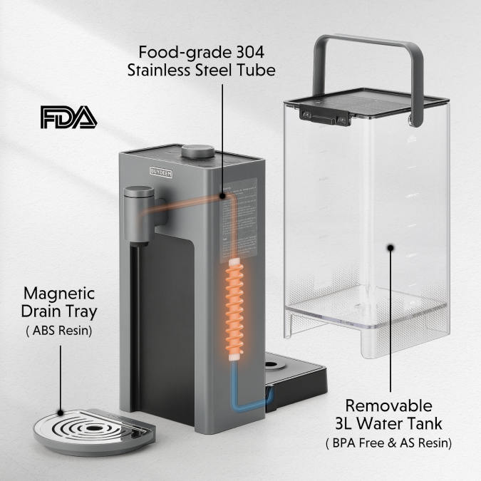 BUYDEEM Instant Hot Water Dispenser is made of food-grade materials and has passed the FDA test.