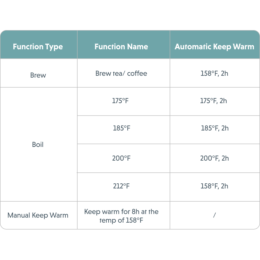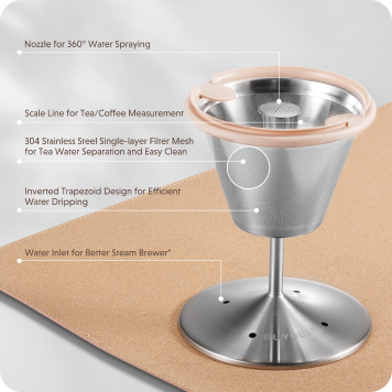 Steam Brewing: The high-temperature steam enables water to rise and spray onto the tea leaves, forming droplets of tea that fall into the kettle.Release delicate flavors and aromas of tea leaves. Suitable for oolong tea, white tea, pu-erh tea, black tea, dark tea, and floral tea.