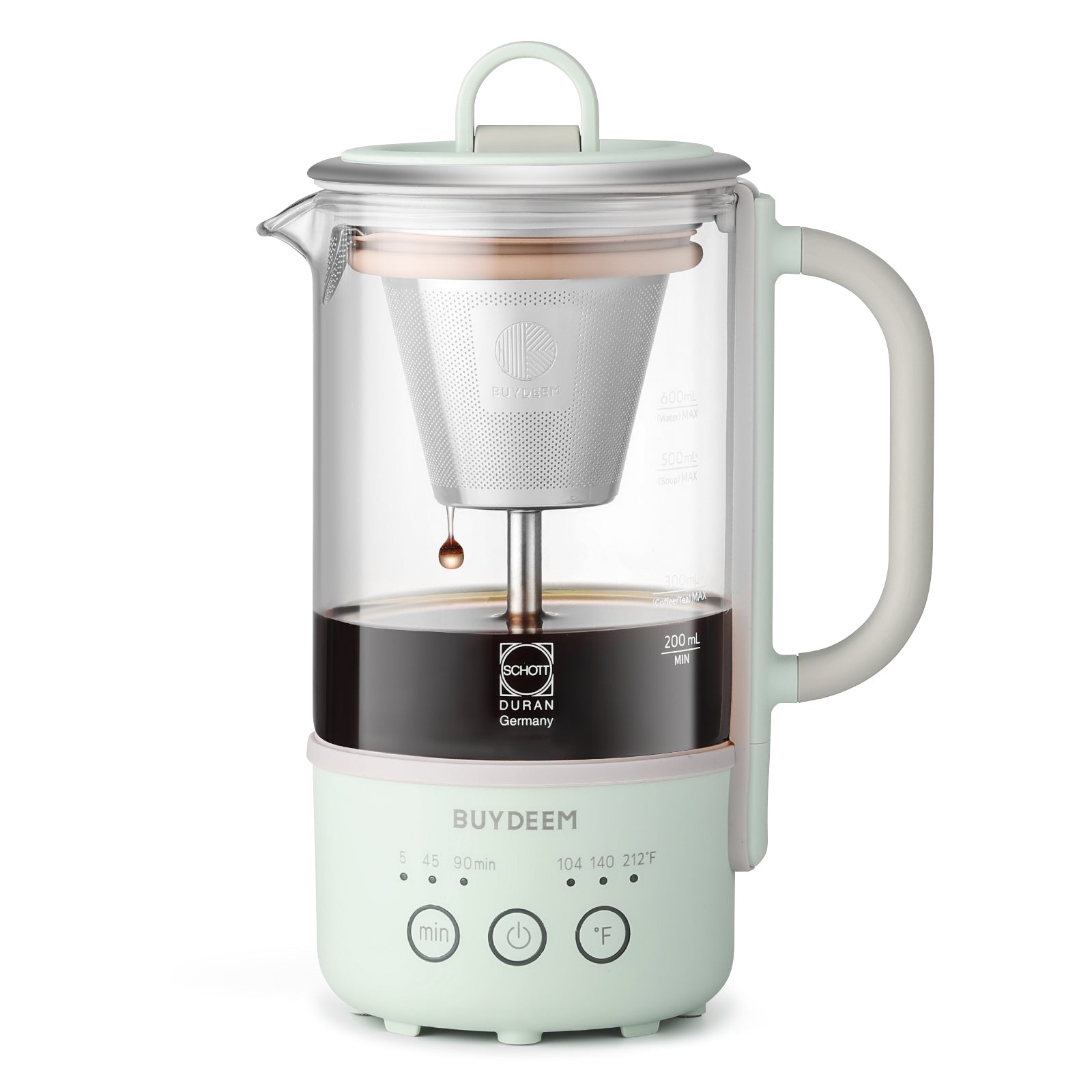 No, all BUYDEEM Beverage Makers are entirely glue-free. The connection between the heating plate and the glass uses FDA-certified Dow Corning food-grade silicone, which is safe, non-toxic, BPA-free, and heat-resistant.