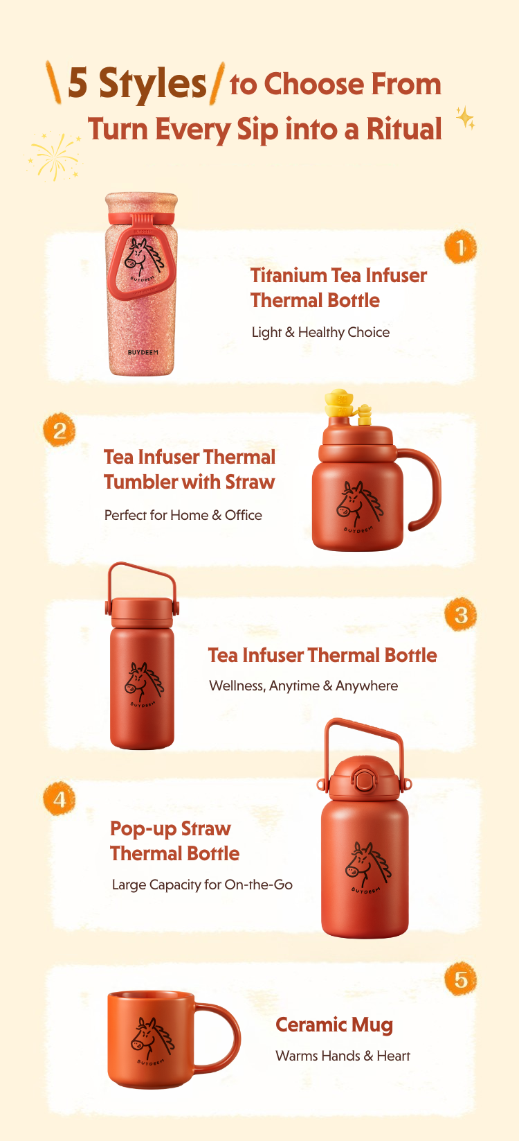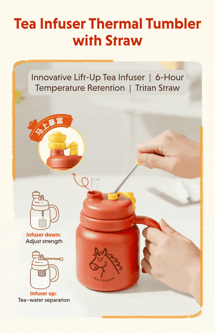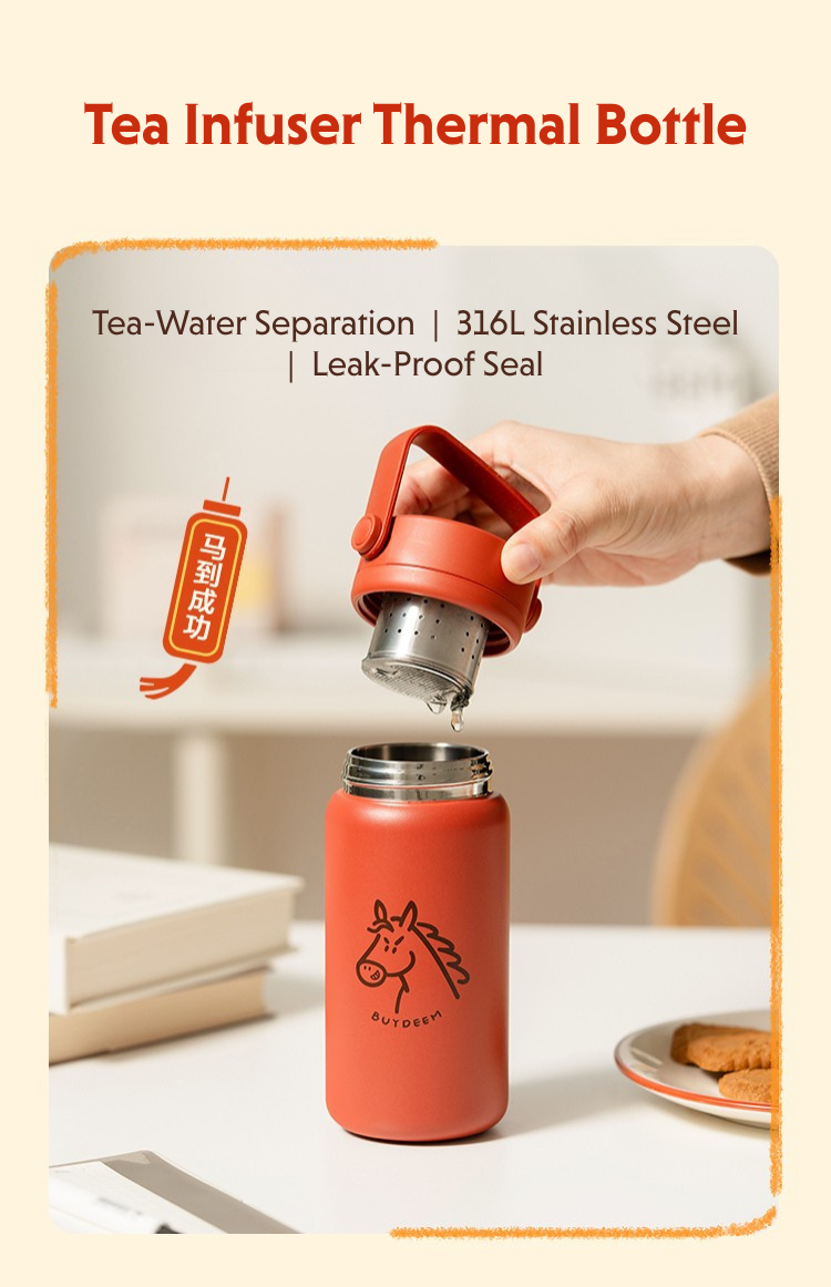 Enjoy freshly brewed tea with this Year of the Horse limited edition tea infuser bottle. Upright or inverted brewing with a tea infuser, lightweight, portable, perfect for home, office, or gifting—limited edition.