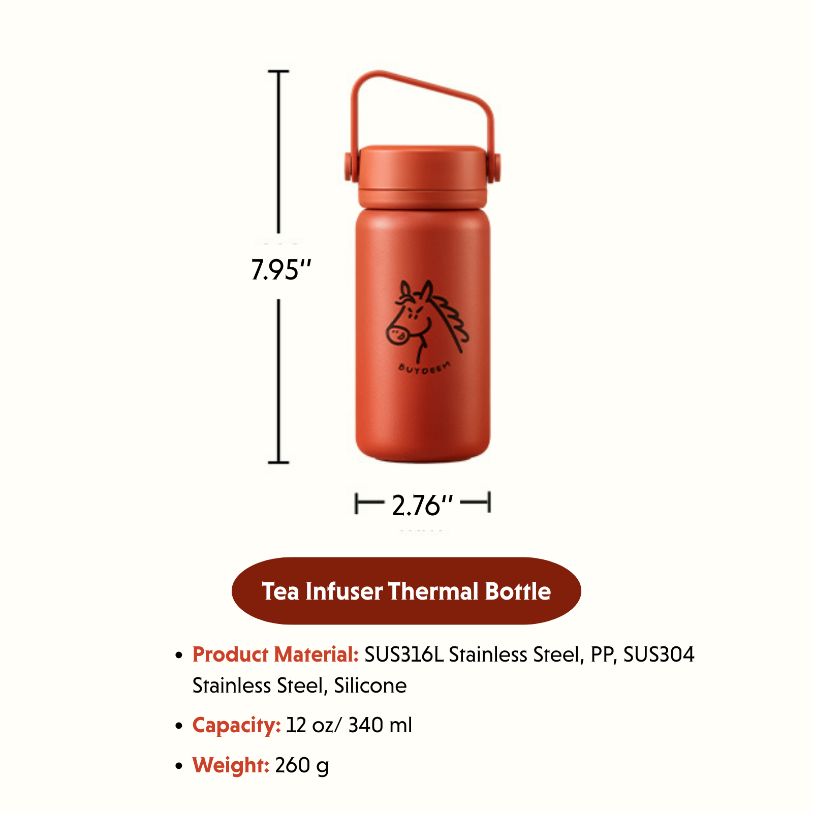 Year of the Horse Limited Edition – Tea Infuser Thermal Bottle 11oz/ 340ml